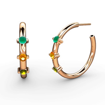 Peridot, sitrin ve kök zümrüt 925 ayar rose altın kaplama gümüş küpe