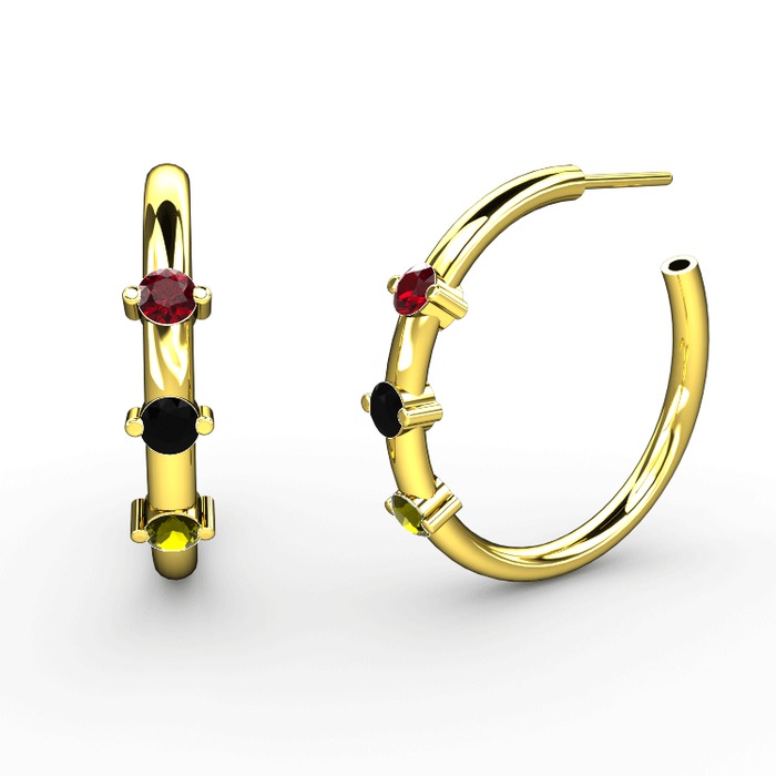 Peridot, siyah zirkon ve garnet 18 ayar altın küpe