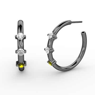 Peridot, swarovski ve beyaz zirkon 925 ayar siyah rodyum kaplama gümüş küpe