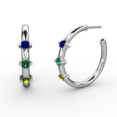 Peridot, yeşil kuvars ve lab safir 925 ayar gümüş küpe