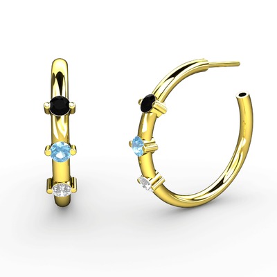Pırlanta, akuamarin ve siyah zirkon 8 ayar altın küpe (0.22 karat)