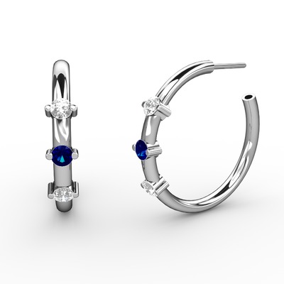 Pırlanta, lab safir ve swarovski 8 ayar beyaz altın küpe (0.22 karat)