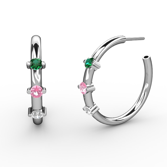 Pırlanta, pembe kuvars ve yeşil kuvars 925 ayar gümüş küpe (0.22 karat)