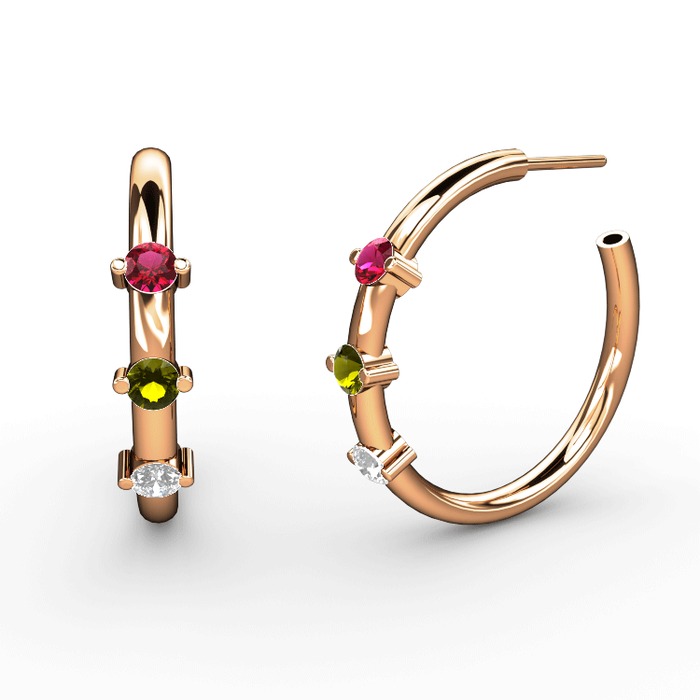Pırlanta, peridot ve rodolit garnet 8 ayar rose altın küpe (0.22 karat)
