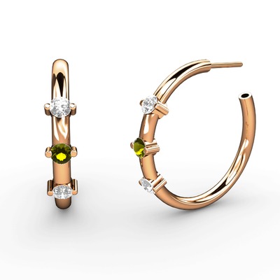 Pırlanta ve peridot 925 ayar rose altın kaplama gümüş küpe (0.44 karat)