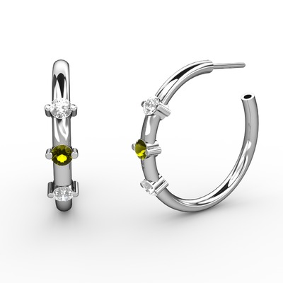 Pırlanta, peridot ve swarovski 925 ayar gümüş küpe (0.22 karat)