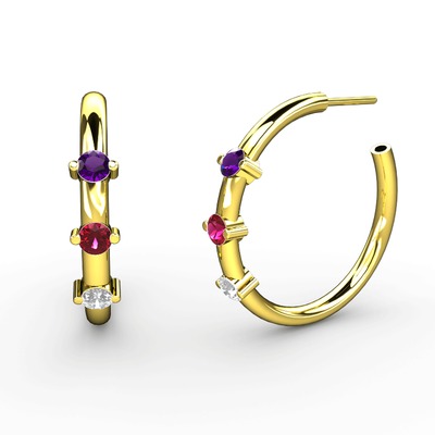 Pırlanta, rodolit garnet ve ametist 14 ayar altın küpe (0.22 karat)