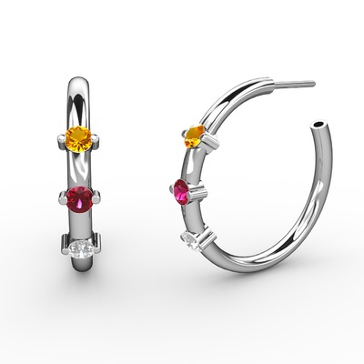Pırlanta, rodolit garnet ve sitrin 18 ayar beyaz altın küpe (0.22 karat)