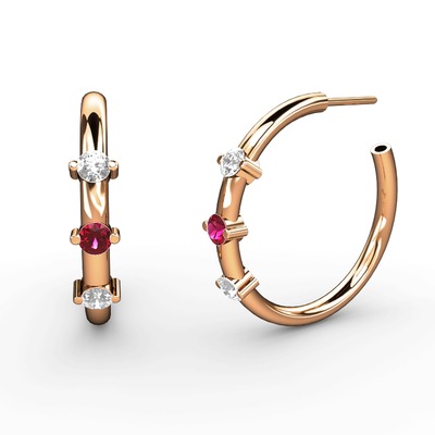 Pırlanta, rodolit garnet ve swarovski 925 ayar rose altın kaplama gümüş küpe (0.22 karat)