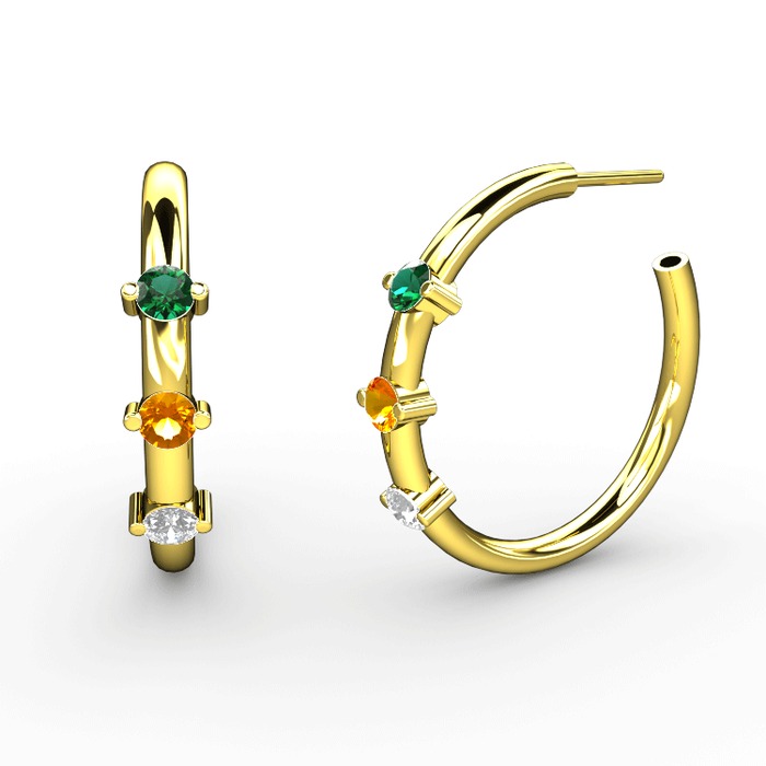 Pırlanta, sitrin ve yeşil kuvars 18 ayar altın küpe (0.22 karat)