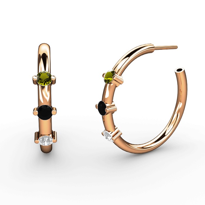 Pırlanta, siyah zirkon ve peridot 14 ayar rose altın küpe (0.22 karat)