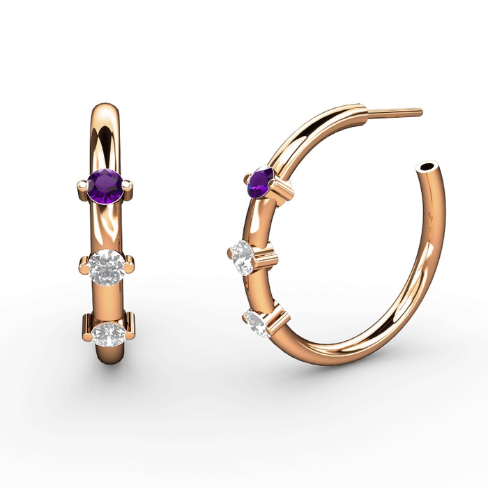 Pırlanta, swarovski ve ametist 14 ayar rose altın küpe (0.22 karat)