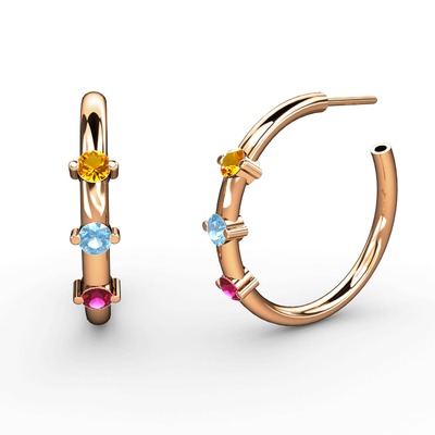 Rodolit garnet, akuamarin ve sitrin 18 ayar rose altın küpe