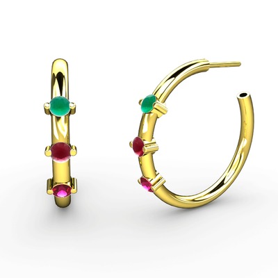 Rodolit garnet, kök yakut ve kök zümrüt 925 ayar altın kaplama gümüş küpe