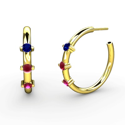 Rodolit garnet, kök yakut ve lab safir 8 ayar altın küpe