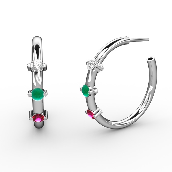 Rodolit garnet, kök zümrüt ve pırlanta 14 ayar beyaz altın küpe (0.22 karat)