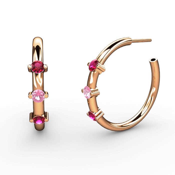Rodolit garnet ve pembe kuvars 925 ayar rose altın kaplama gümüş küpe