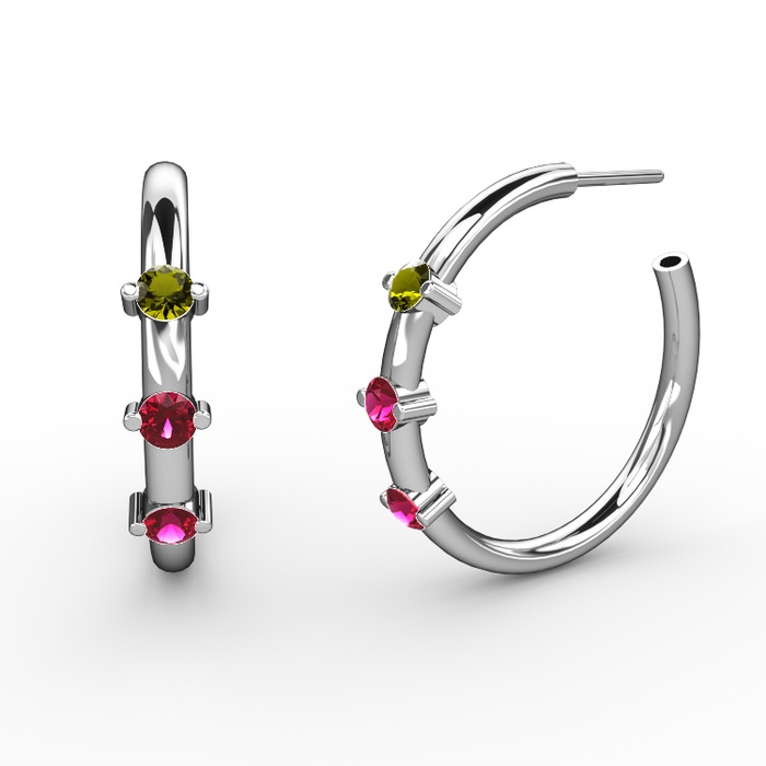 Rodolit garnet ve peridot 14 ayar beyaz altın küpe