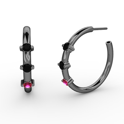 Rodolit garnet ve siyah zirkon 925 ayar siyah rodyum kaplama gümüş küpe