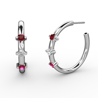 Rodolit garnet, swarovski ve garnet 8 ayar beyaz altın küpe