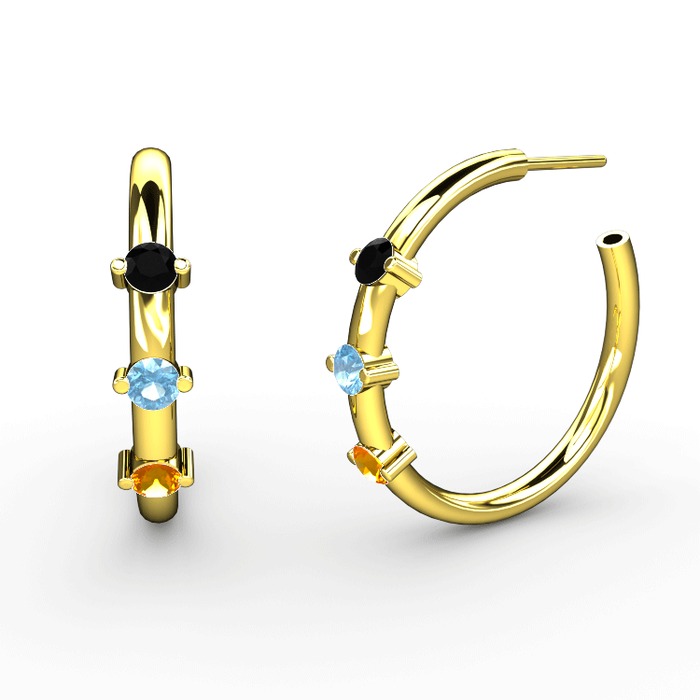 Sitrin, akuamarin ve siyah zirkon 8 ayar altın küpe