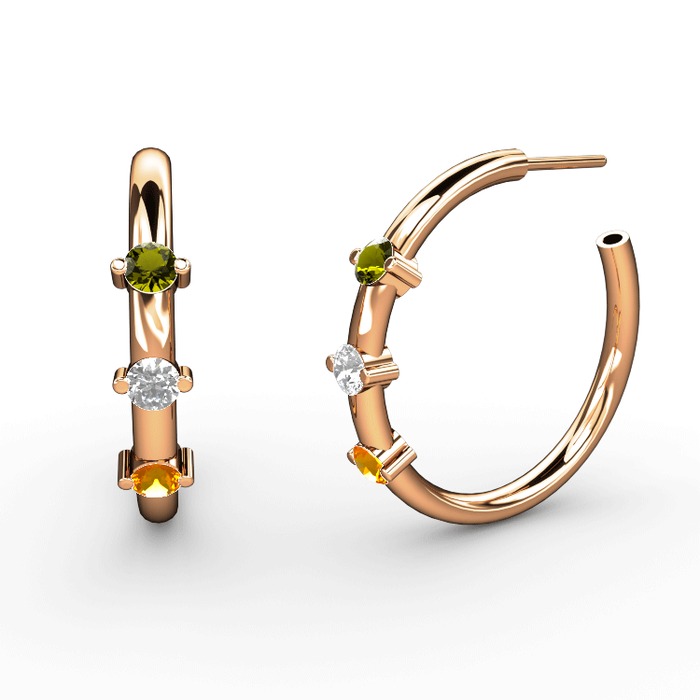 Sitrin, beyaz zirkon ve peridot 14 ayar rose altın küpe