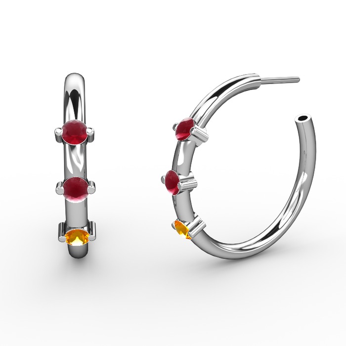 Sitrin ve kök yakut 14 ayar beyaz altın küpe