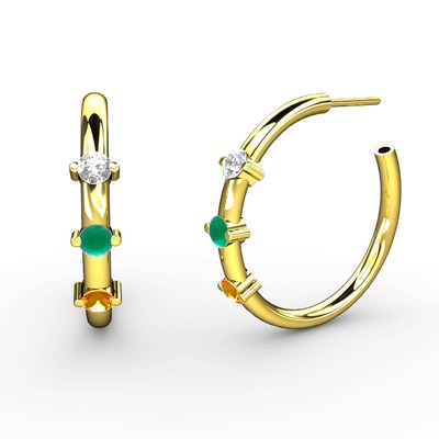 Sitrin, kök zümrüt ve swarovski 18 ayar altın küpe