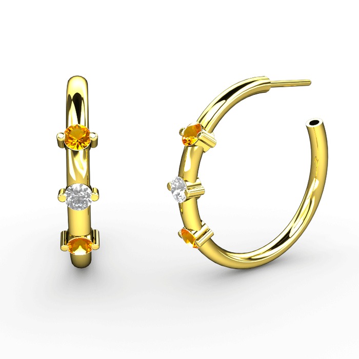 Sitrin ve pırlanta 925 ayar altın kaplama gümüş küpe (0.22 karat)