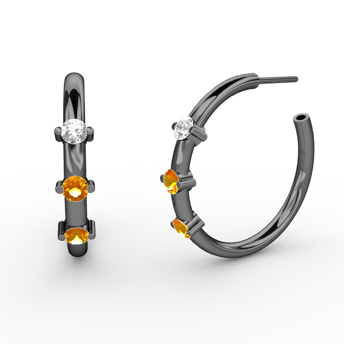 Sitrin ve pırlanta 925 ayar siyah rodyum kaplama gümüş küpe (0.22 karat)