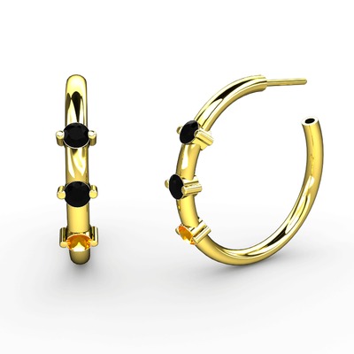 Sitrin ve siyah zirkon 8 ayar altın küpe