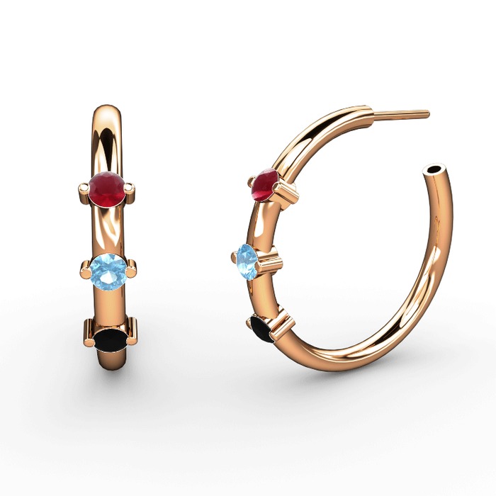 Siyah zirkon, akuamarin ve kök yakut 8 ayar rose altın küpe