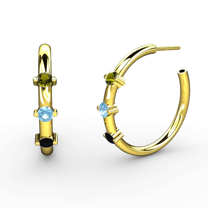 Siyah zirkon, akuamarin ve peridot 14 ayar altın küpe