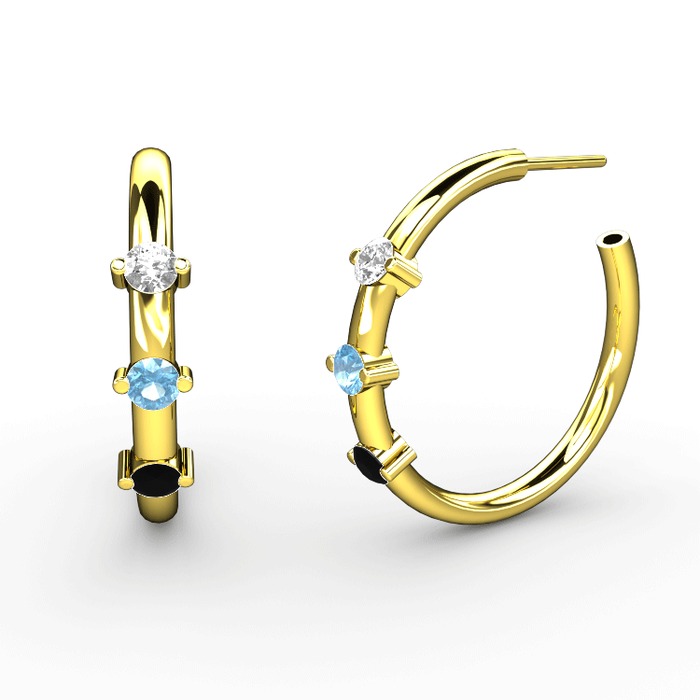 Siyah zirkon, akuamarin ve swarovski 14 ayar altın küpe