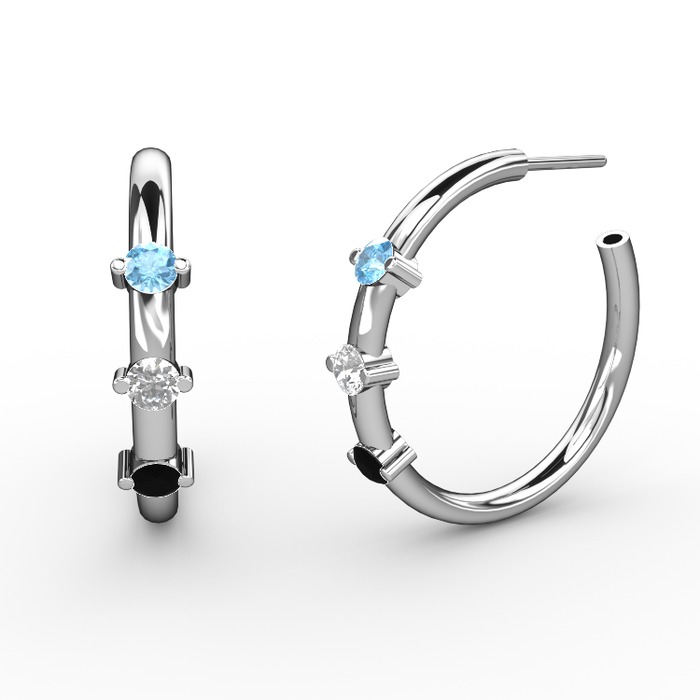 Siyah zirkon, beyaz zirkon ve akuamarin 8 ayar beyaz altın küpe