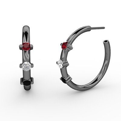 Siyah zirkon, beyaz zirkon ve garnet 925 ayar siyah rodyum kaplama gümüş küpe