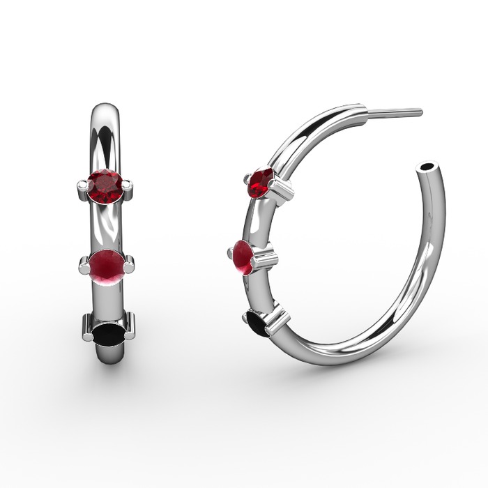 Siyah zirkon, kök yakut ve garnet 925 ayar gümüş küpe