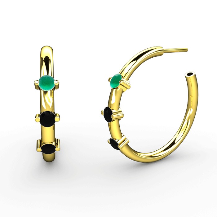 Siyah zirkon ve kök zümrüt 18 ayar altın küpe