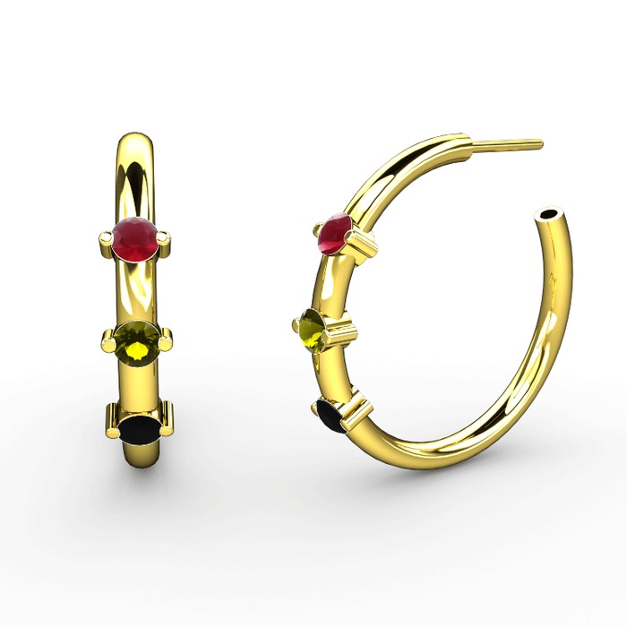 Siyah zirkon, peridot ve kök yakut 8 ayar altın küpe