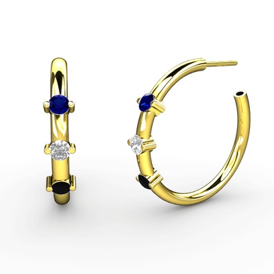 Siyah zirkon, pırlanta ve lab safir 925 ayar altın kaplama gümüş küpe (0.22 karat)
