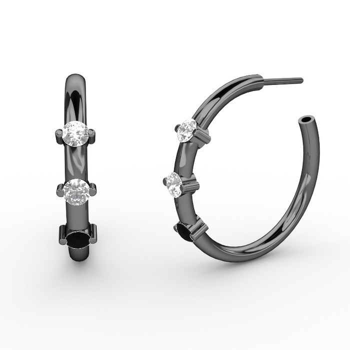 Siyah zirkon, swarovski ve pırlanta 925 ayar siyah rodyum kaplama gümüş küpe (0.22 karat)