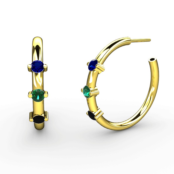 Siyah zirkon, yeşil kuvars ve lab safir 18 ayar altın küpe