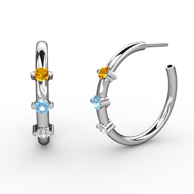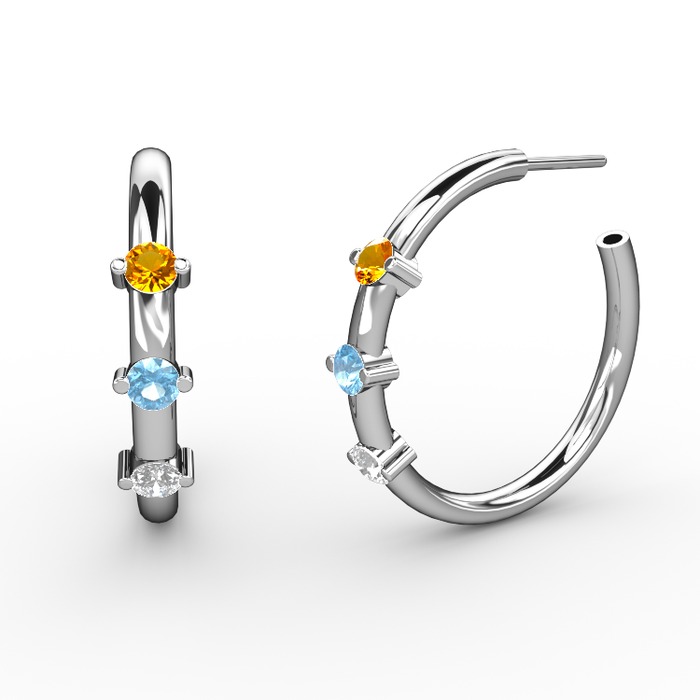 Swarovski, akuamarin ve sitrin 14 ayar beyaz altın küpe
