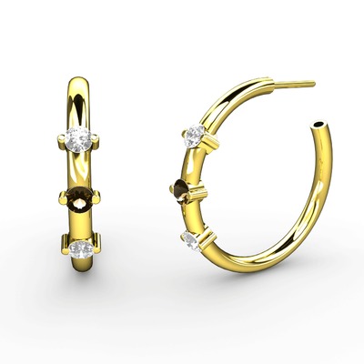 Swarovski, dumanlı kuvars ve pırlanta 14 ayar altın küpe (0.22 karat)