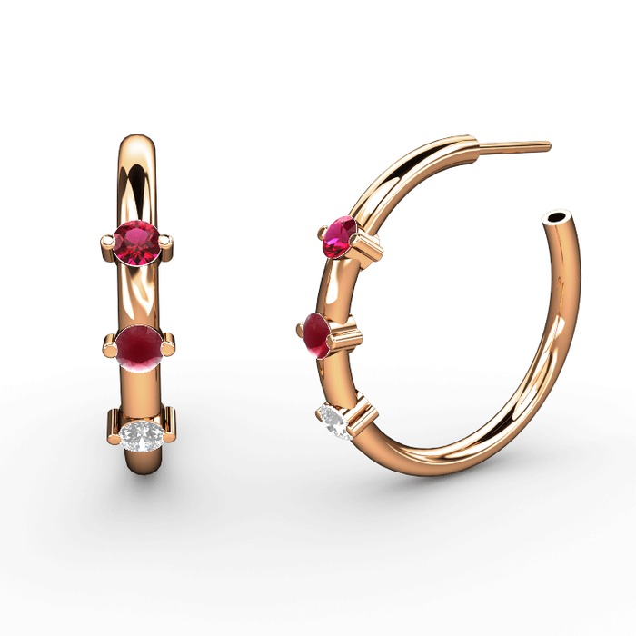 Swarovski, kök yakut ve rodolit garnet 18 ayar rose altın küpe