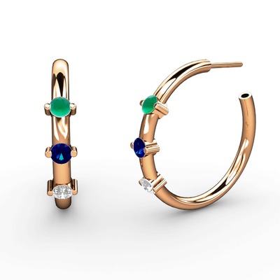 Swarovski, lab safir ve kök zümrüt 925 ayar rose altın kaplama gümüş küpe