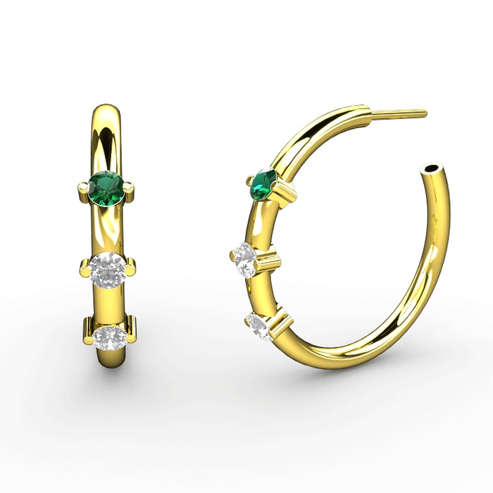 Swarovski, pırlanta ve yeşil kuvars 925 ayar altın kaplama gümüş küpe (0.22 karat)