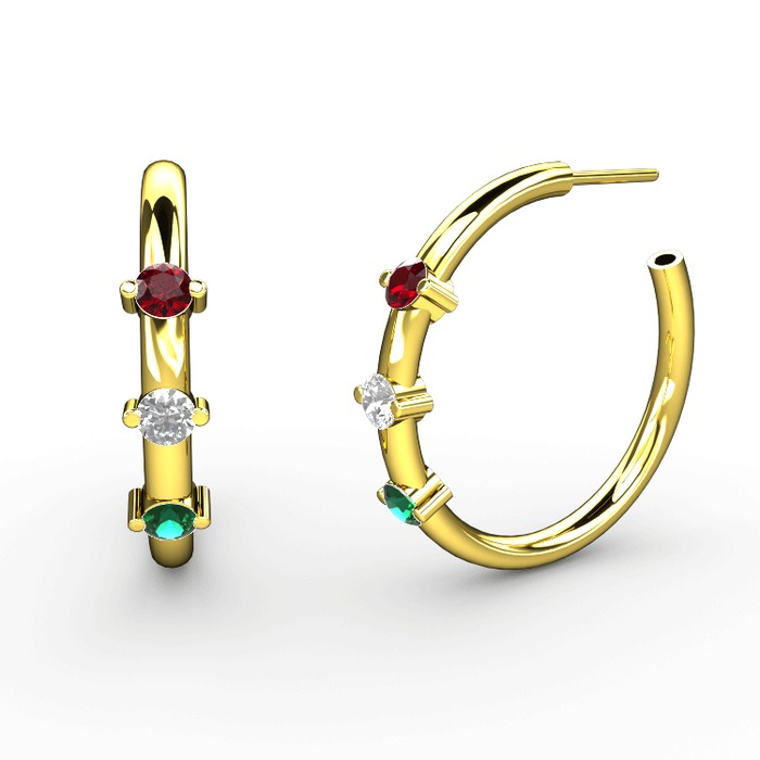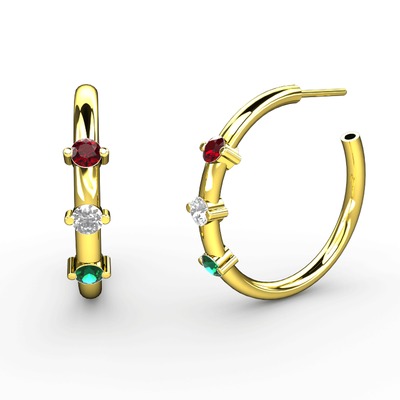 Yeşil kuvars, beyaz zirkon ve garnet 14 ayar altın küpe