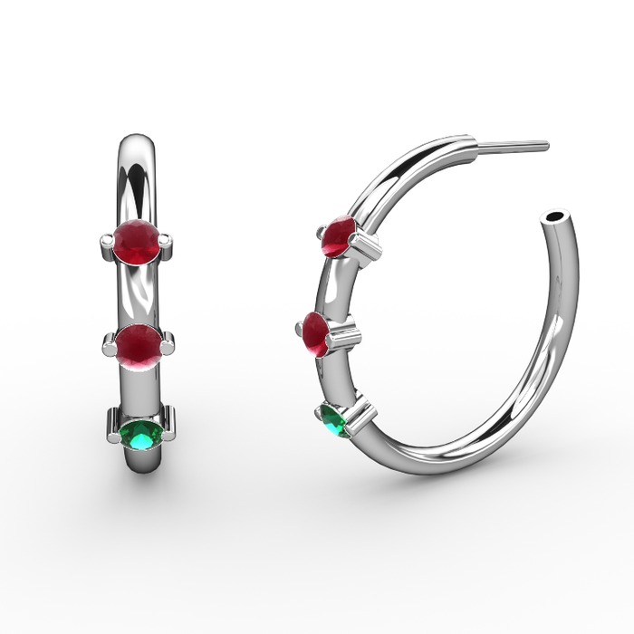 Yeşil kuvars ve kök yakut 14 ayar beyaz altın küpe