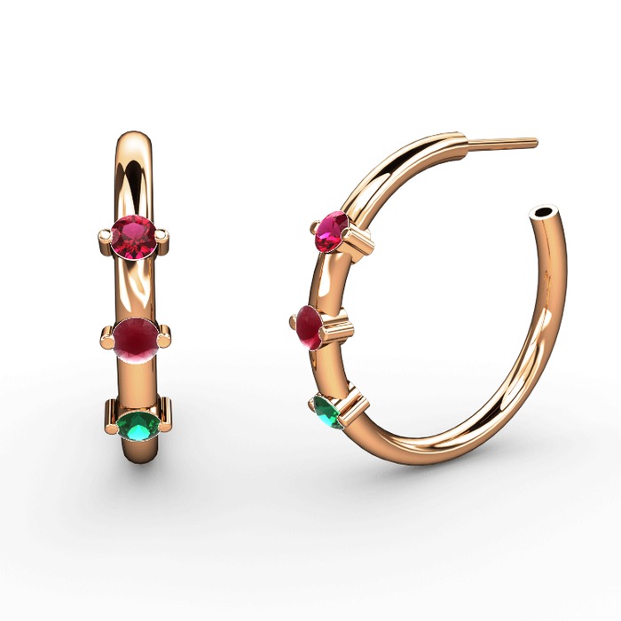 Yeşil kuvars, kök yakut ve rodolit garnet 925 ayar rose altın kaplama gümüş küpe
